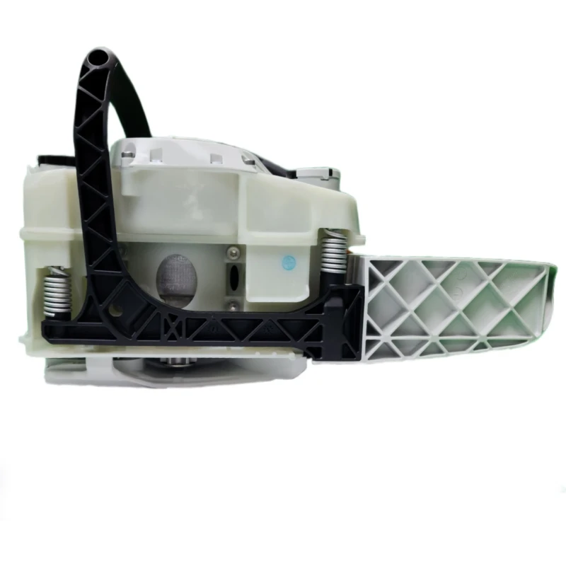 На MS 182 инженеры уже поставили полноценную пружинную антивибрационную систему. Кто не знает, выглядит это так: рукоятки и силовой блок соединены через металлические пружины. А они, в свою очередь, эффективнее гасят колебания двигателя и цепи. Конечно, вибрация все еще есть, полностью ее никто не отменял. Но все же, работать теперь стало ощутимо мягче.
