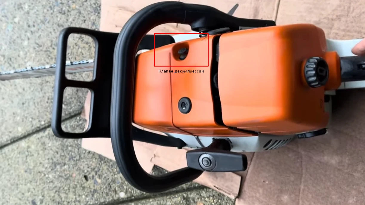 Теперь о запуске Stihl MS 361. Здесь процедура тоже похожа на другие пилы. Но модель эта профессиональная, и тут есть своя фишка. Это декомпрессионный клапан, и он реально облегчает старт. Его задача - сбросить часть давления в цилиндре, чтобы шнур стартера тянулся легче.